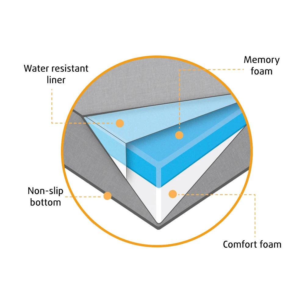 - Het ligbed is gevuld met regulier schuim met daarop een laag memory foam