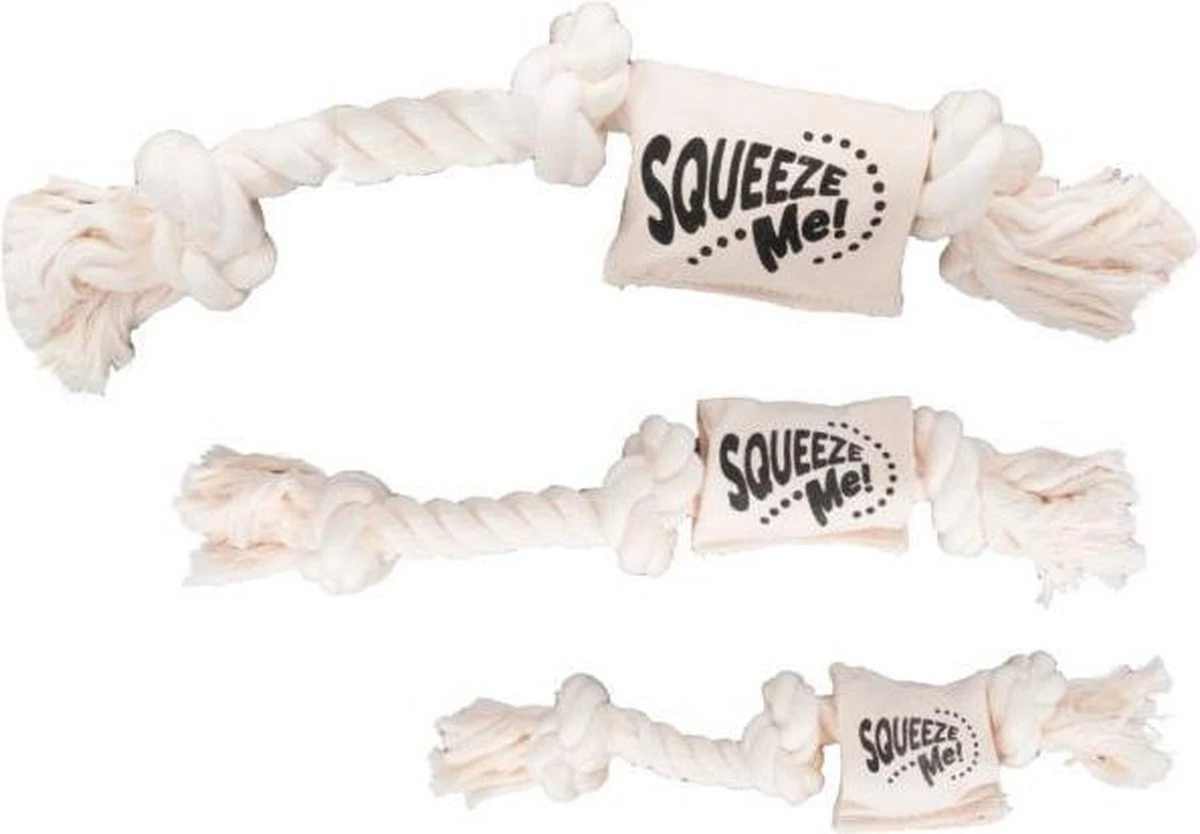 Dit hondenspeelgoed is meer dan alleen een eenvoudig katoenen touw met een knoop. Als bijzonder detail is een pieper geΓ―ntegreerd, wat het touw nog spannender en interessanter maakt. De gebruiksmogelijkheden zijn divers en trouwens, tanden en ruimtes tussen de tanden van de viervoeters worden schoongemaakt terwijl ze op het touw kauwen. Verkrijgbaar in drie verschillende maten.