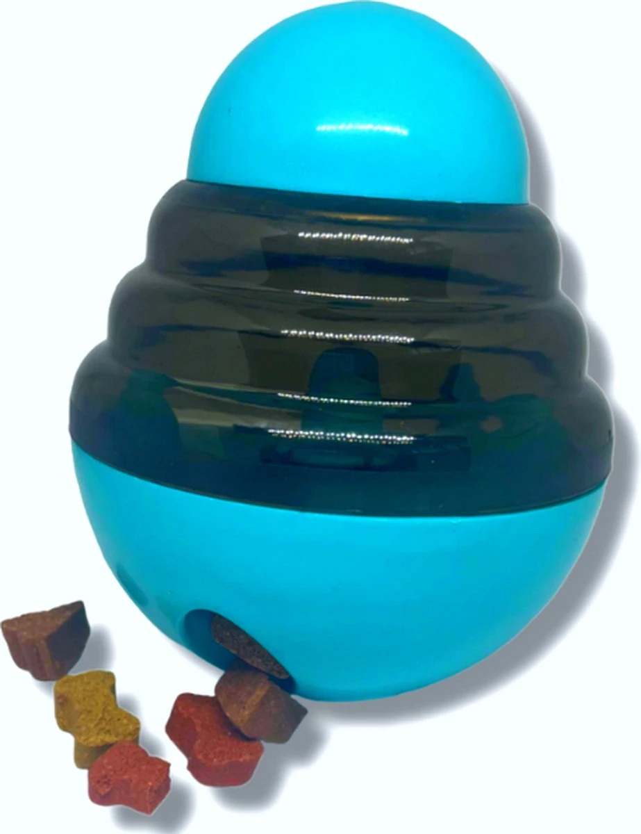 Gezondheid: Om honden fit en gelukkig te houden, zijn fysieke activiteiten noodzakelijk. Voldoende beweging is voor iedere hond belangrijk. Ook voor zijn psychische gezondheid is het noodzakelijk dat jouw hond in beweging blijft. Zie het als een uitlaatklep voor jouw huisdier. Actief zijn voorkomt bovendien verveling bij honden en maakt ze gelukkiger. Deze bal zorgt voor beweging. Hij rolt door de kamer heen en laat als beloning een spoor achter van koekjes of voedzame brokjes. Door de onvoorspelbare bewegingen blijft het een uitdaging.