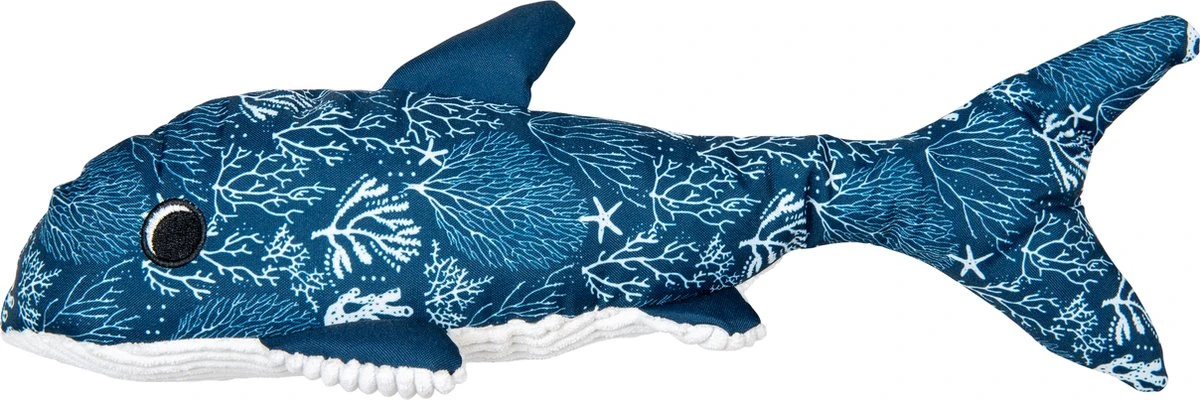 Op zoek naar leuk en ecologisch waterspeelgoed voor honden? Dan is de collectie Revive van Jack and Vanilla zeker iets voor jullie! Deze vrolijke haai met pieper is gemaakt met stof van gerecycleerde PET-flessen. De afmetingen zijn 40x14cm.