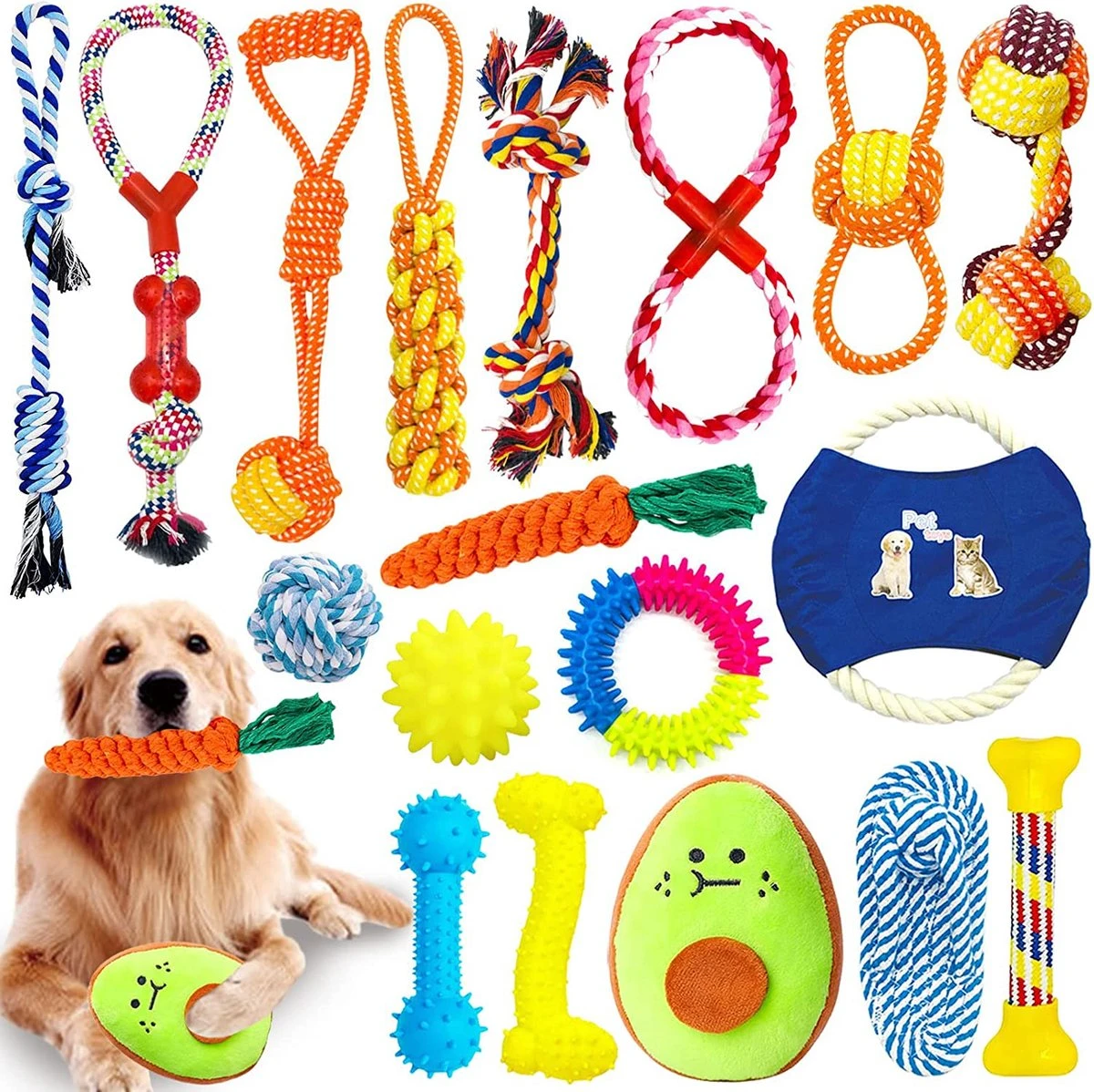Og Speelgoedset, 18-delig Puppyspeelgoed, Interactief Kauwspeelgoed Van Natuurlijk Katoen En Rubber, Niet-giftig En Geurloos Robuust, Geschikt Voor Kleine En Middelgrote Honden